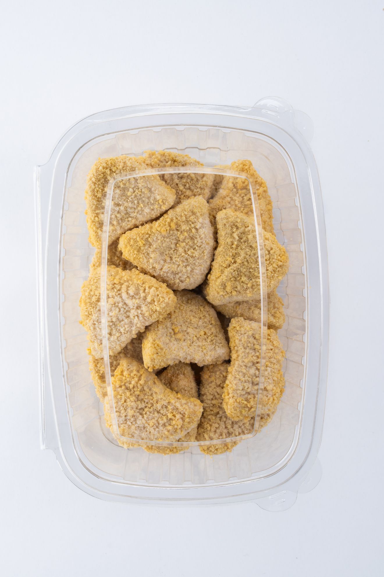 Bite-sized chicken pieces coated for a golden, crispy finish. (chicken, breadcrumbs, mild spices)