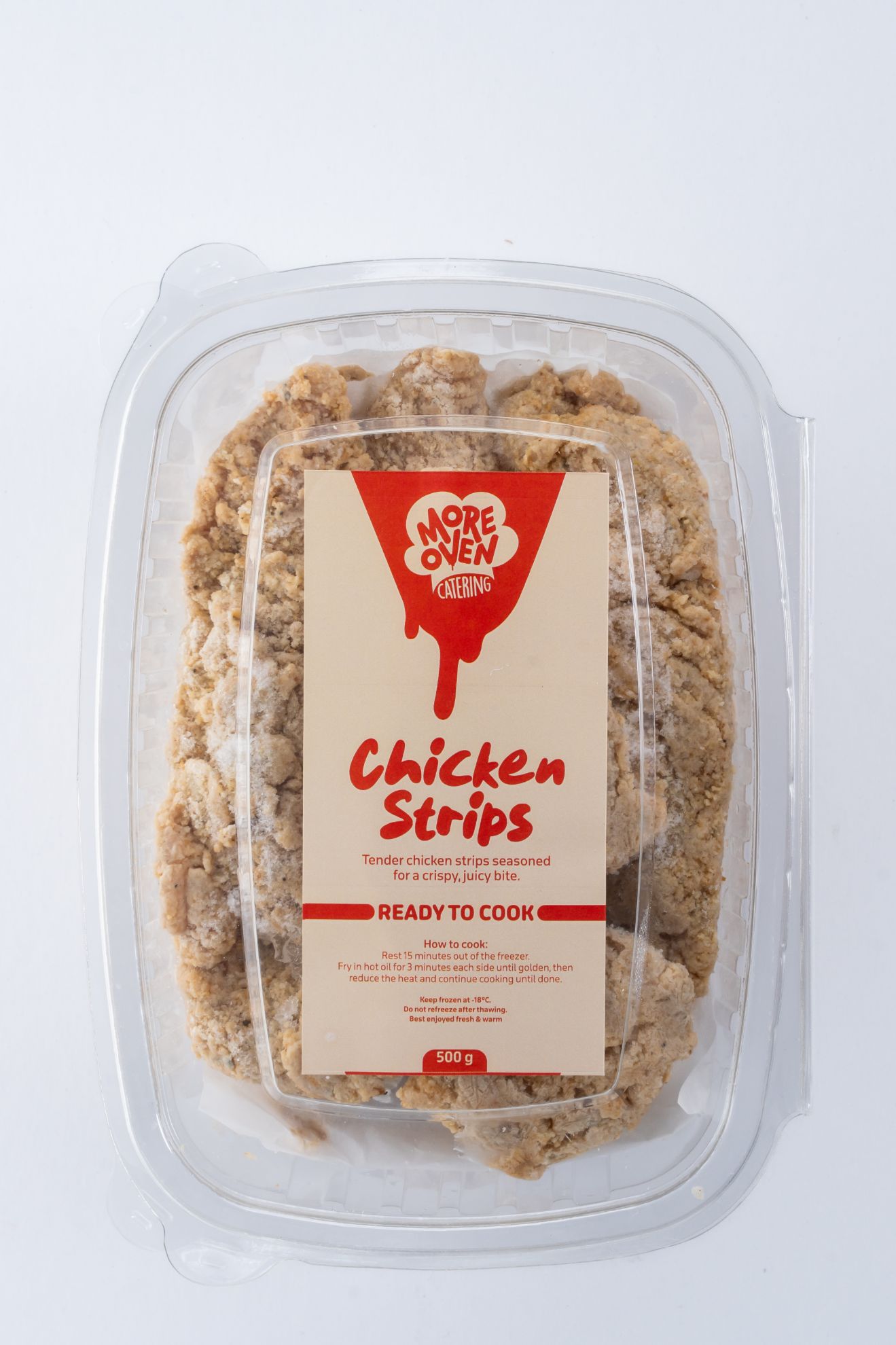 Tender chicken strips seasoned for a crispy, juicy bite. (chicken breast, mild spices)
