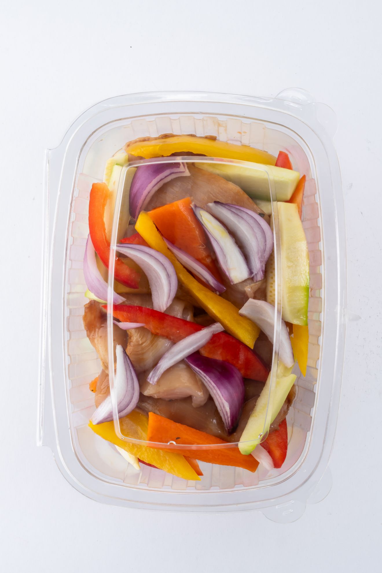 Ready-to-cook chicken and mixed vegetables. (chicken, mixed vegetables, spices, olive oil)