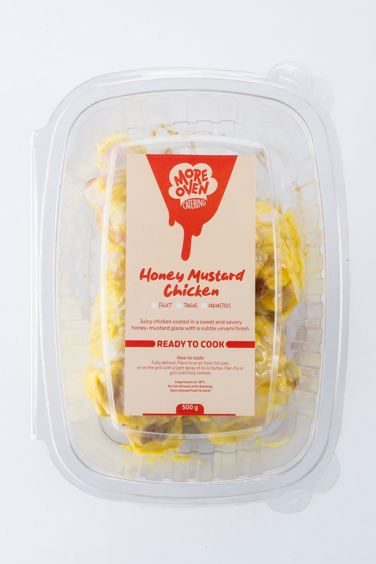 Juicy chicken coated in a sweet and savory honey-mustard glaze with a subtle umami finish. (honey, mustard, soy sauce)