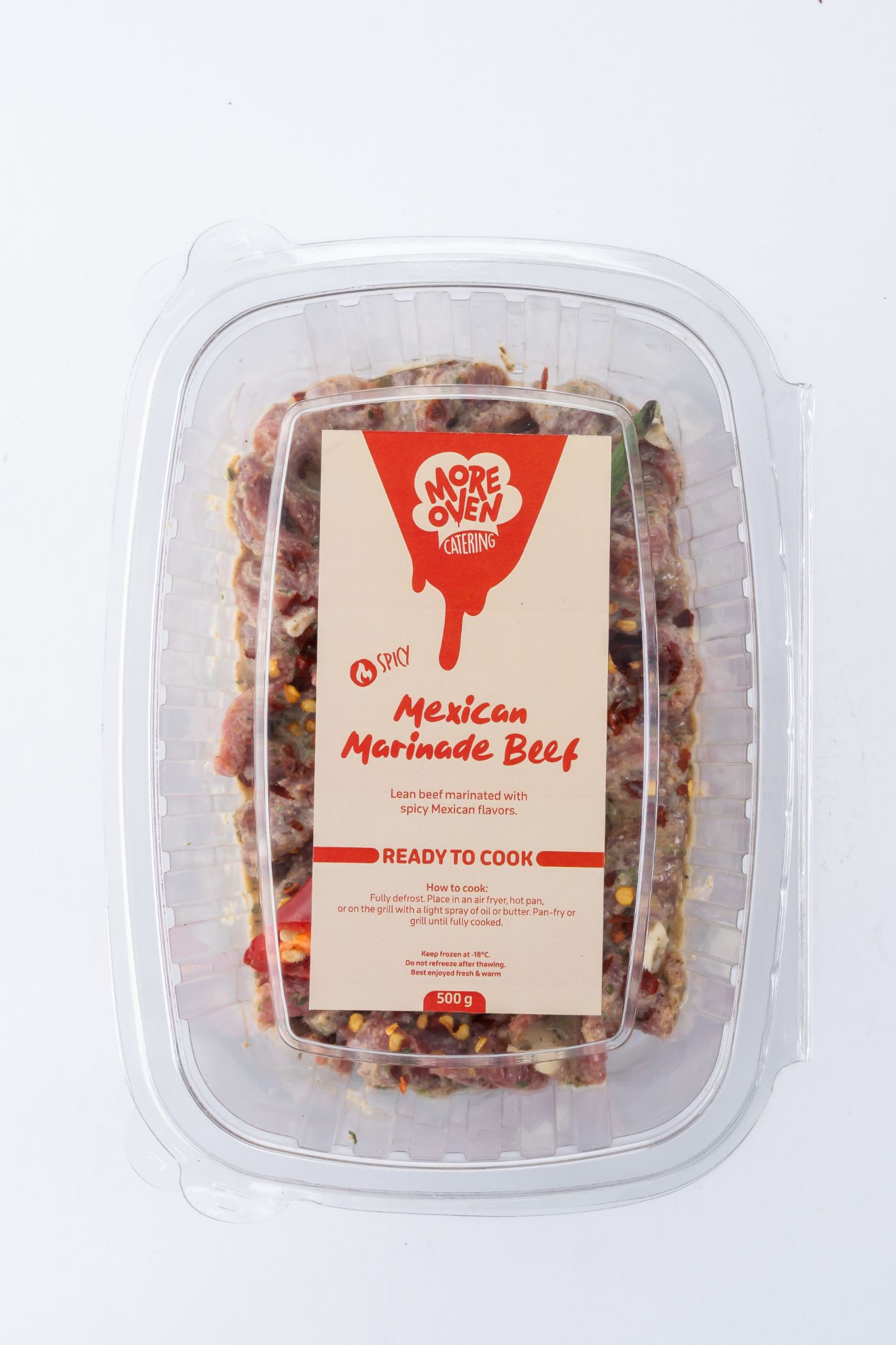 Lean beef marinated with spicy Mexican flavors. (Mexican spices, paprika, cumin, coriander)