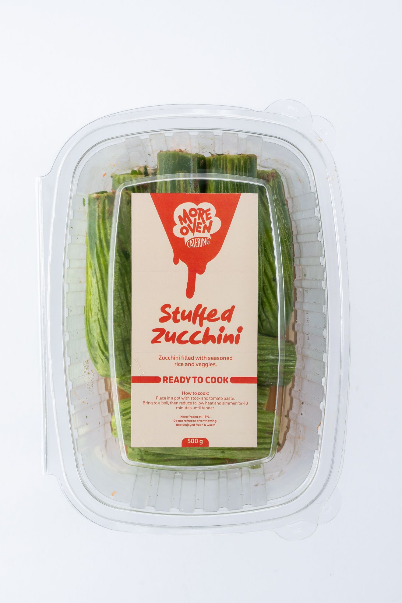 Zucchini filled with seasoned rice and herbs. (Rice, Zucchini,Greens,Spices, Tomatoes, Tomato Sauce)